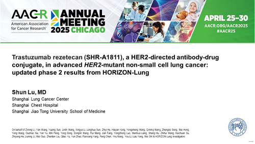 2025 AACR口头报告|尊龙凯时Ag创新药瑞康曲妥珠单抗治疗晚期HER2突变非小细胞肺癌研究结果披露